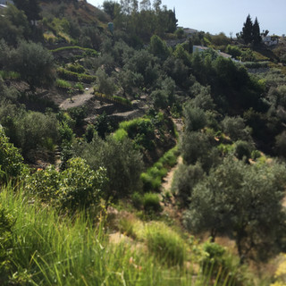 The last few weeks we have been battling with the huge costs of building concrete retaining walls. Imagine our excitement at finding a simple organic solution to retaining our strip of mountainside! Vetiver! So on Saturday we visited Anna and David in Sayalonga, Malaga, who run Vetiver Spain (https://vetiverspain.com/). We were very pleased to find out that the supplier for Spain of this amazing grass resource is located only a 40 minute drive from where we are, so we decided to go and see the vetiver at work and pick up the plants ourselves! This gave us a possibility to look around their land and how they have transformed over a period of around 10 years time, a steep hillside into a flourishing oasis full of trees, with beautiful terraces everywhere. Vetiver works by tapping extremely deep roots vertically down into the earth, up to 4 meters. acting to create bio pillars of support to the land, and also to tap into and raise the water table to start to create a much better environment for trees and crops on the surface. It’s planted in rows, creating terraces that you simply fill in behind the Vetiver as it grows upwards, making inclined areas into level terraces. It’s also non invasive so will not take over your land. Where you put it, is where it grows. The leaves you can also cut and use for mulch. Perfect! The solution is at hand.